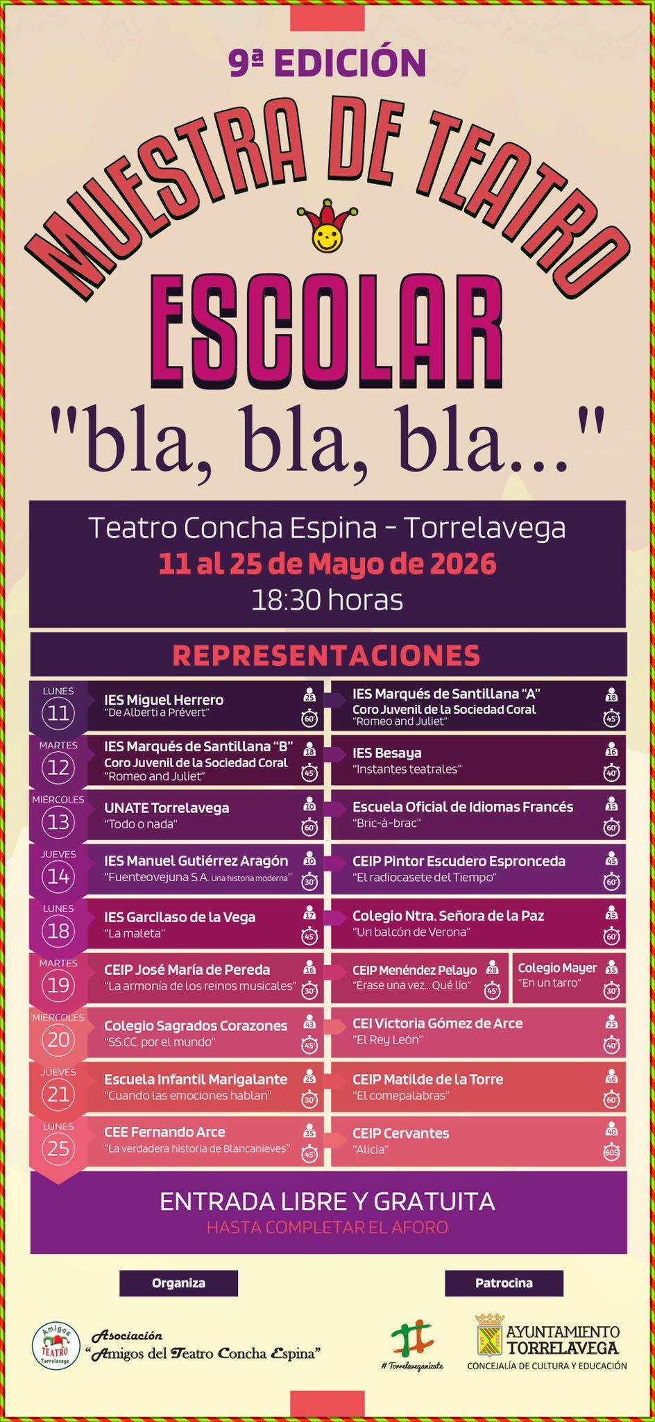 11/mayo - 18:30 - 25/mayo - 20:00 Teatro Teatro Municipal Concha Espina Pedro Alonso Revuelta, 3, Torrelavega, Cantabria Gratuito